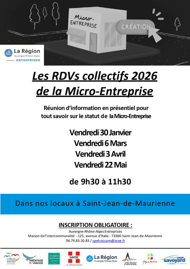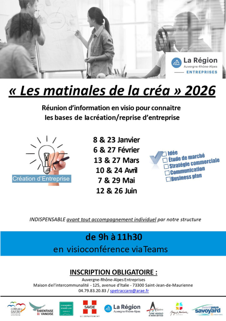 La Communauté de communes Terres de Maurienne souhaite informer les habitants et porteurs de projets des solutions d’accompagnement proposées par Auvergne Rhône-Alpes Entreprises, l’agence économique régionale dédiée au développement des entreprises et des territoires.