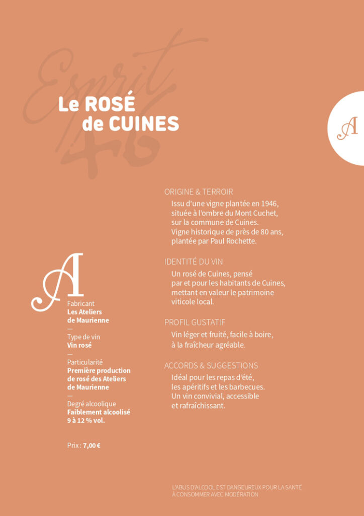 Au-delà de ses qualités gustatives, le Rosé de Cuines se distingue par sa dimension humaine. Il est élaboré par les Ateliers de Maurienne, une structure d’insertion par le travail. Chaque bouteille reflète ainsi un savoir-faire, mais aussi des parcours de vie et un engagement en faveur de l’emploi local et de l’inclusion.
