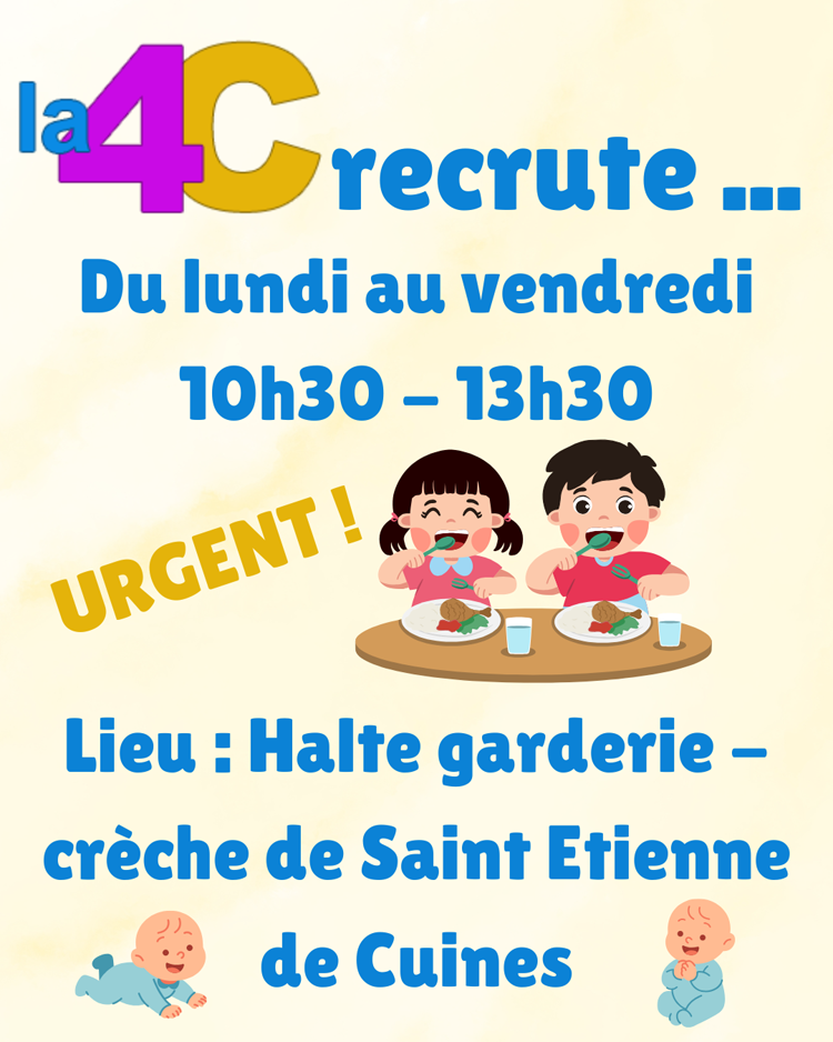 La halte-garderie de Saint-Étienne-de-Cuines recherche en urgence un agent de service pour renforcer son équipe.