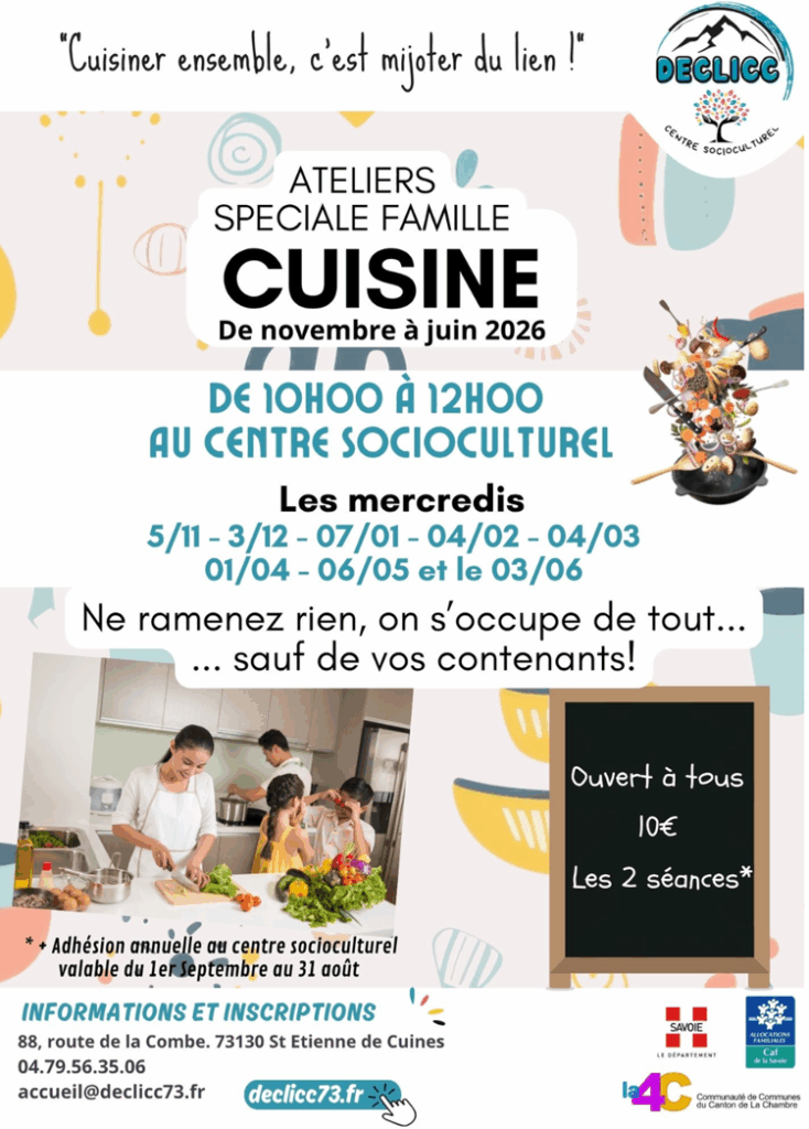 Inscriptions et renseignements auprès de DECLICC : 04 79 56 35 06accueil@declicc73.fr