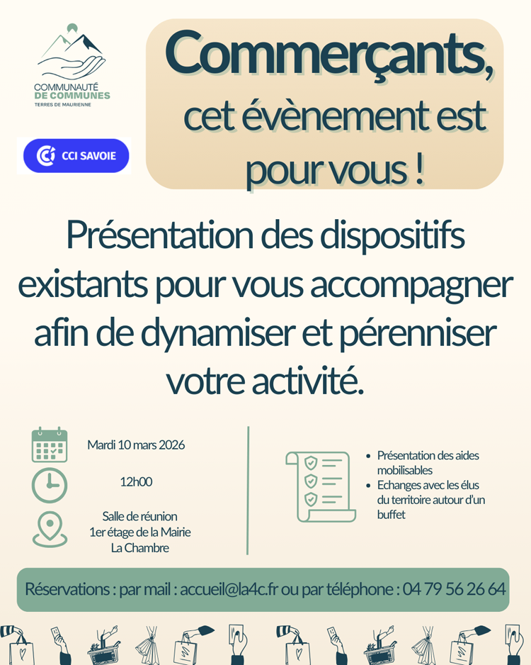 La CCI de Savoie, en partenariat avec la Communauté de Communes Terres de Maurienne, propose aux TPE du commerce un temps convivial de présentation des dispositifs d’accompagnements et de conseils mobilisables pour pérenniser et dynamiser leur activité.