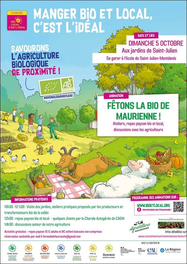 La Communauté de Communes du Canton de La Chambre relaie l’initiative « Fêtons la bio en Maurienne », une journée conviviale dédiée à l’agriculture biologique et aux producteurs locaux.